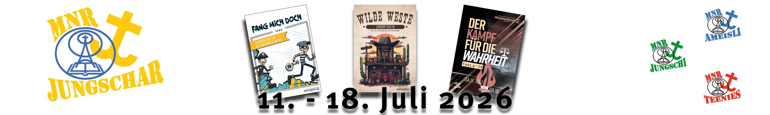 Das Lager der Jungschi (9-12 Jahre) ist ein Zeltlager und es findet vom Sonntag, 12.07. bis Samstag, 18.07.2026 in der Nähe von Zwillikon statt.